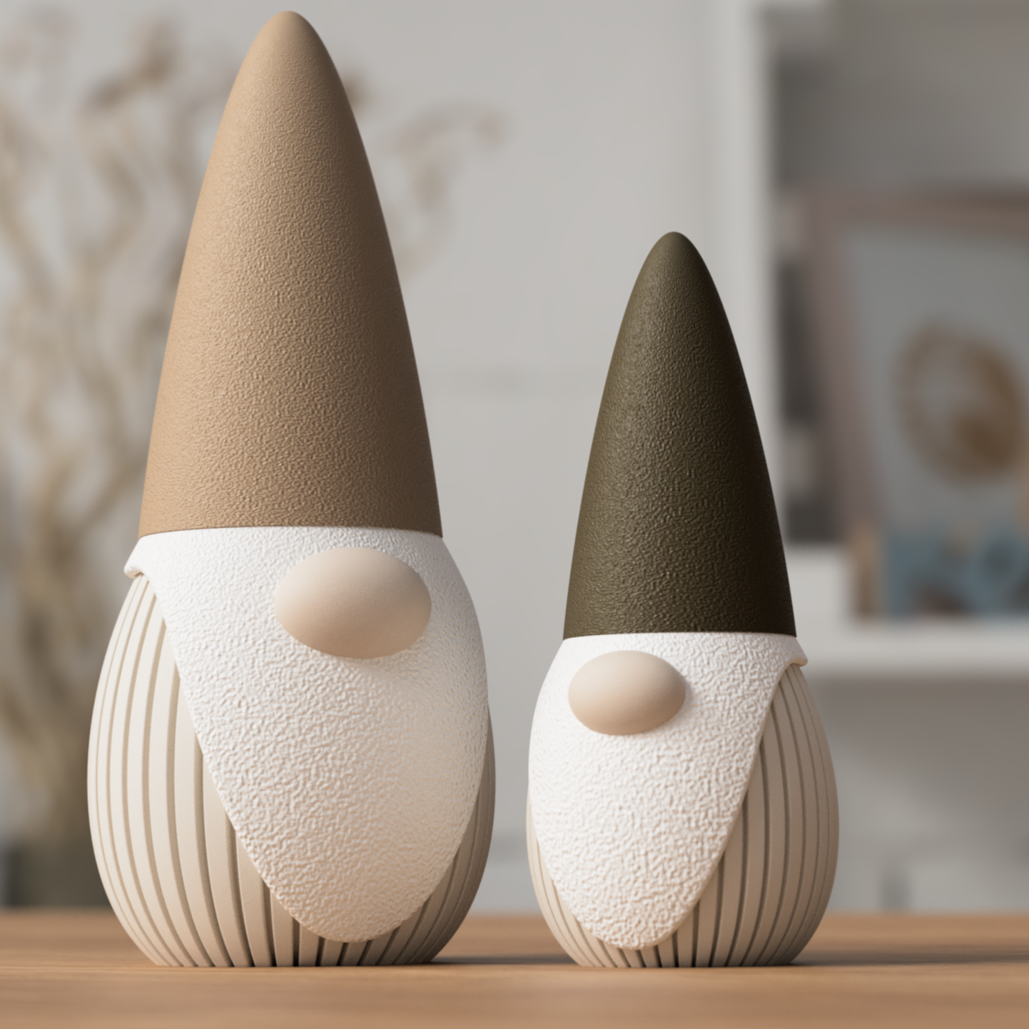 Breng warmte en gezelligheid in huis met deze unieke 3D-geprinte gnooms, gemaakt van biologisch PLA – een duurzaam en milieuvriendelijk materiaal. Met hun moderne design en charmante uitstraling passen ze perfect in elk interieur, van Scandinavisch tot landelijk.