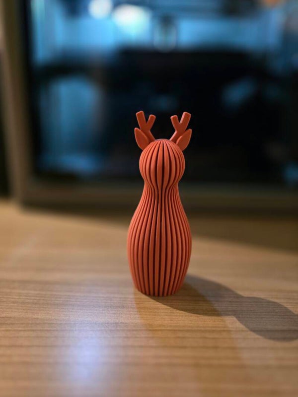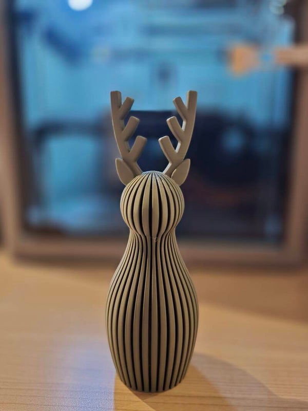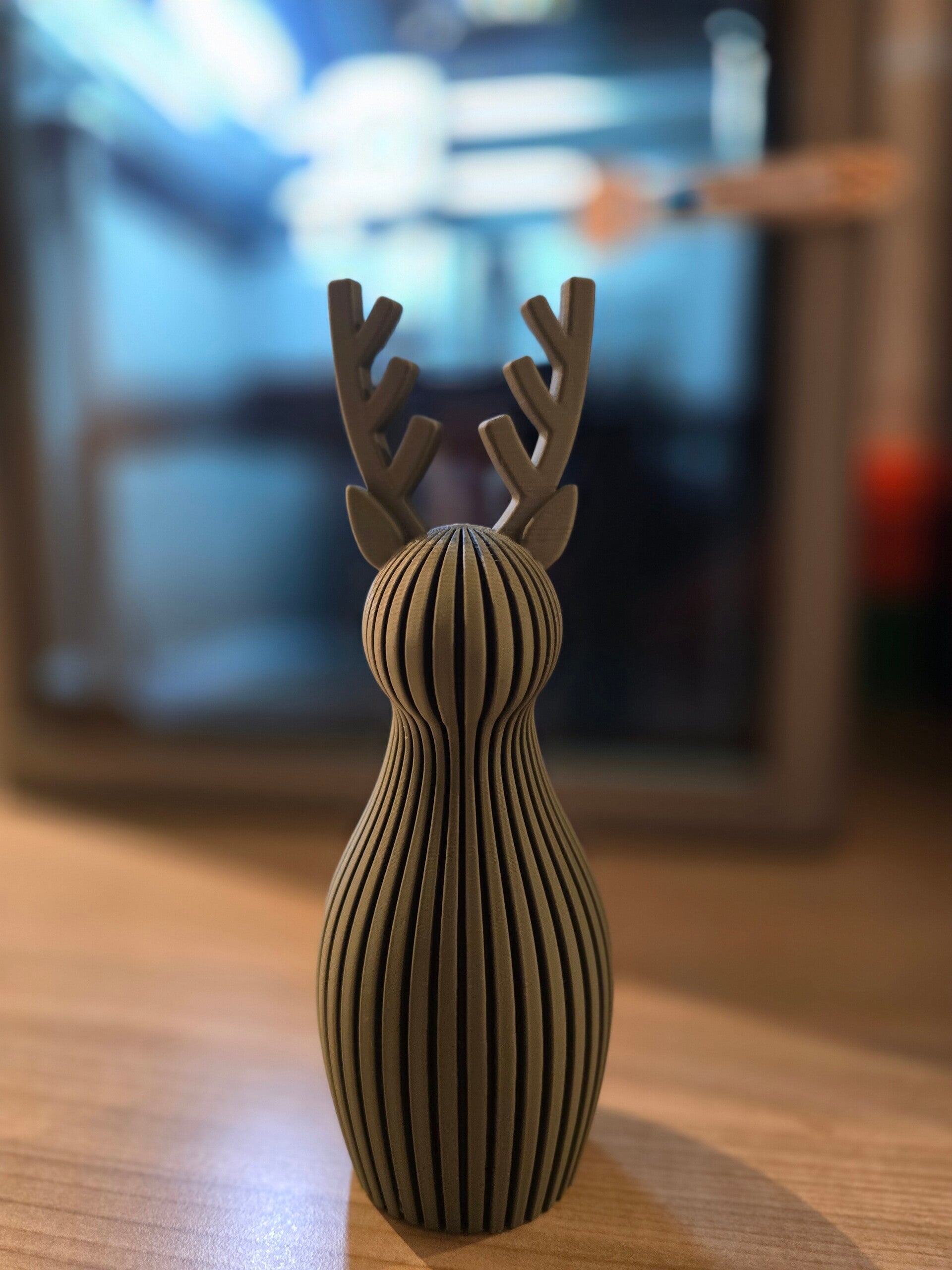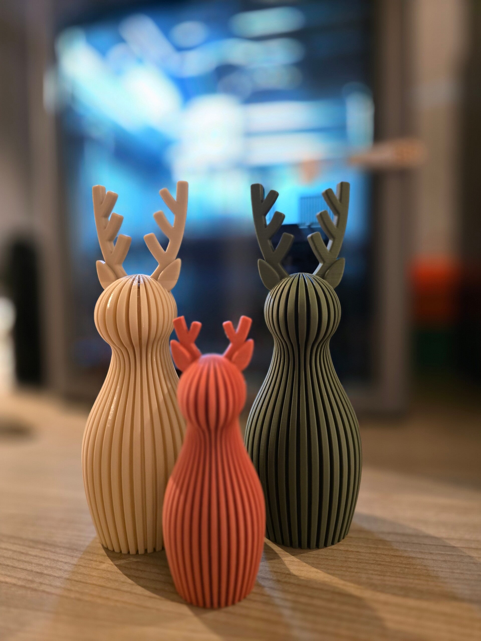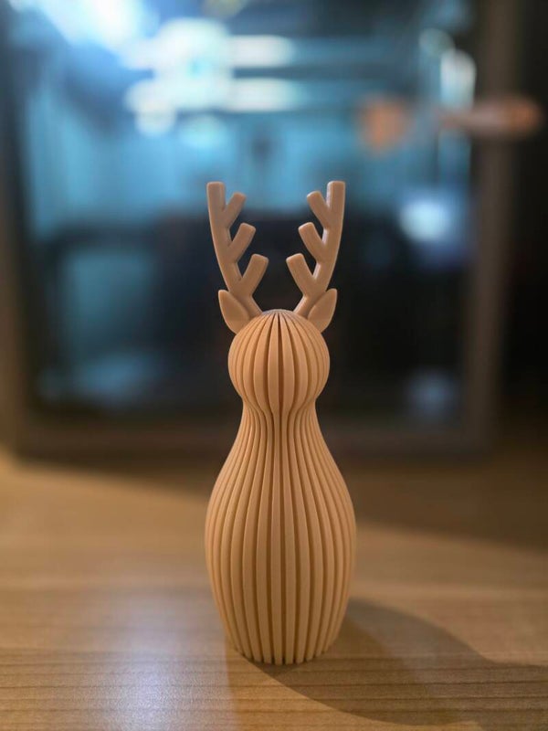 Onze rendieren worden professioneel 3D-geprint met hoogwaardig, duurzaam PLA-materiaal en hebben een zachte matte afwerking die naadloos past in moderne, warme woonruimtes.