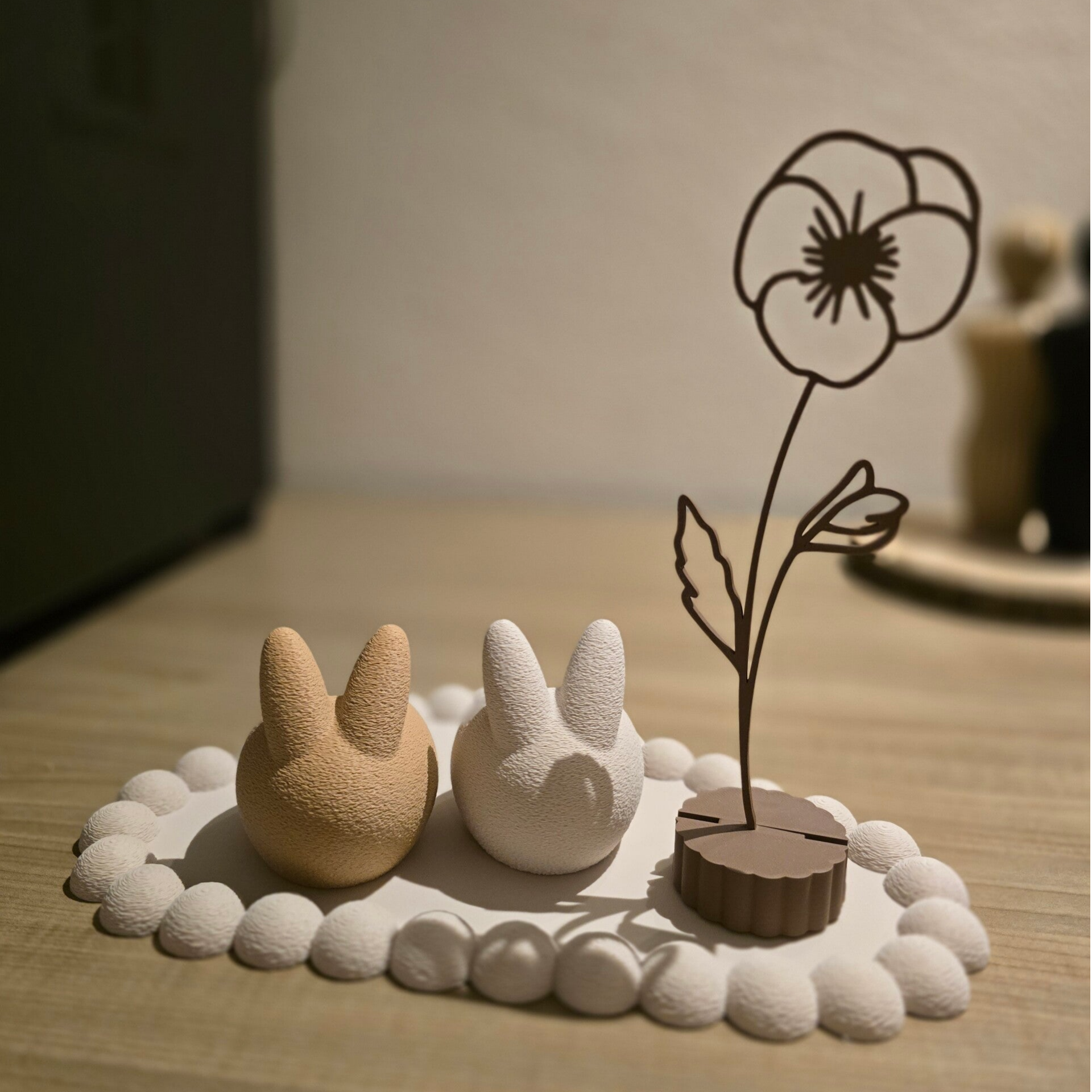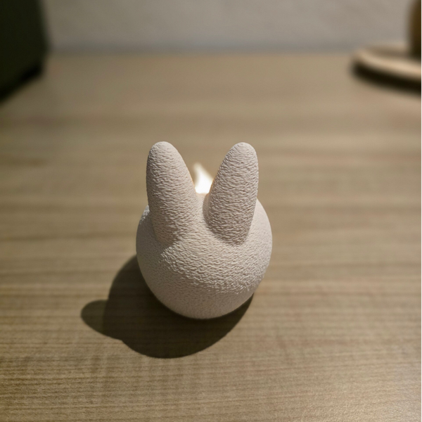 Breng warmte en gezelligheid in huis met deze waxinelichthouder in haasvorm. Deze stijlvolle 3D-geprinte waxinelichthouder combineert een modern design met een speelse uitstraling dankzij de subtiele haasoortjes en zachte, matte afwerking.